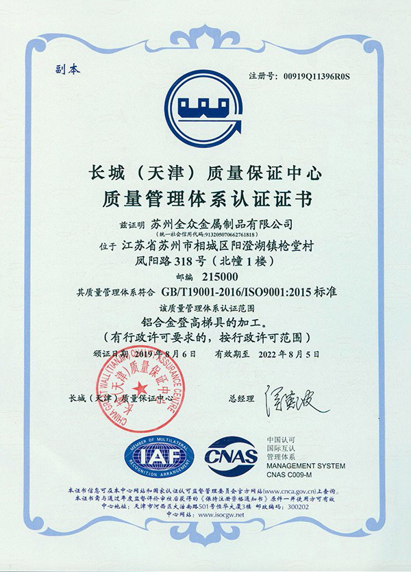 开云官方app下载站专注铝合金制品的开发“产品就是人品”的企业理念,不断进行技术创新、设备创新、服务创新、和管理方式创新来继续研发出更多满足未来发展需要的产品, 公司产品通过欧盟认证取得CE认证并取得证书,铝合金脚手架系列产品通过SGS认证,铝合金平台和梯具类产品均严格按照GB12142-2007,GB17888等标准设计生产。